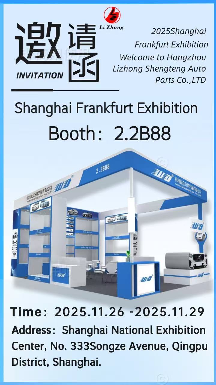 Hangzhou Lizhong Shengteng Automotive Parts Co., Ltd. is excited to join the Shanghai Frankfurt Exhibition 2025 from Nov 26–29 at the Shanghai National Exhibition Center (Booth 2.2B88). We’ll be showcasing our high-quality, reliable auto parts for global OEMs and aftermarket partners.